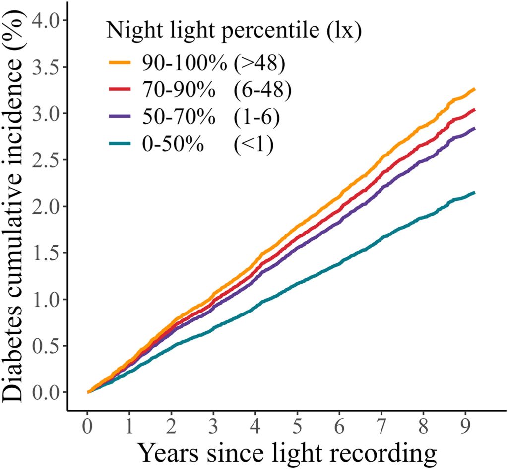 Participants with higher nighttime light exposure had up to a 67 per cent greater chance of developing T2 diabetes