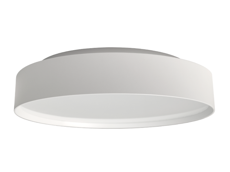 Low-profile circular luminaire for surface mounted or suspended applications. Available in six sizes, designed for general purpose illumination with direct/indirect optics created from two separated LED arrays. At time of installation the indirect LEDs can be disengaged to create a fixture with direct-only illumination.